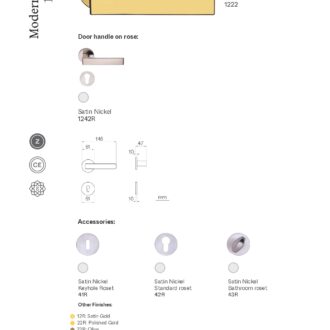 دستگیره های درب در دو مدل “دستگیره پلاک” و “دستگیره رزت” تولید می شود. دستگیره رزت، جدید ترین نوع دستگیره های درب است که در دستگیره روزت قسمت دستگیره و جای قفل از همدیگر جدا می باشد که این موضوع به زیبایی کار کمک می کند.